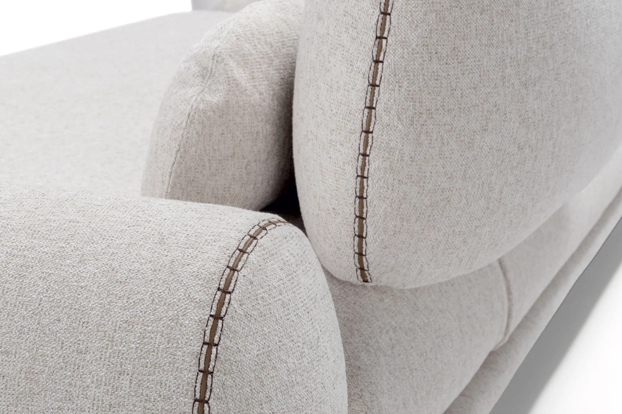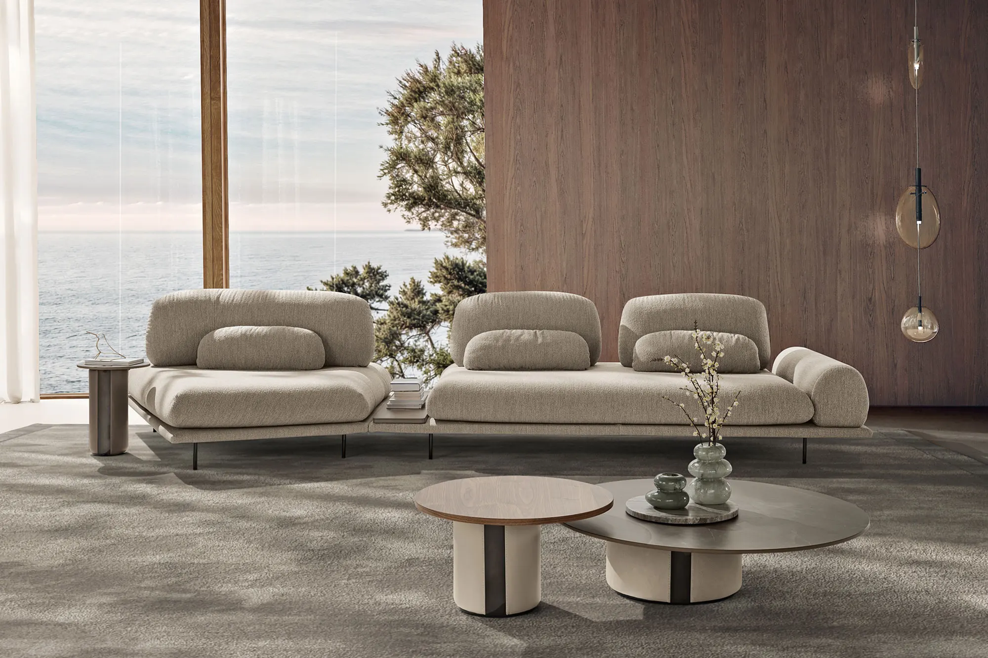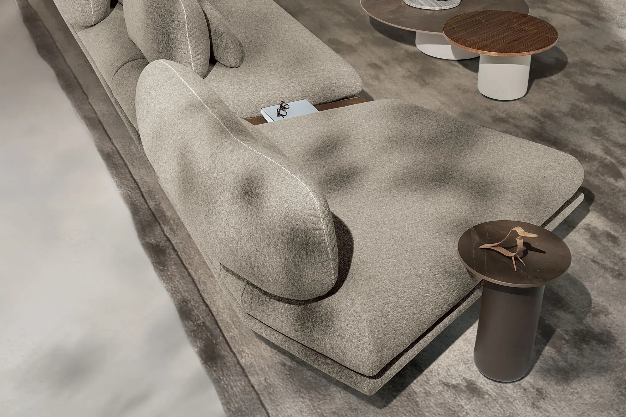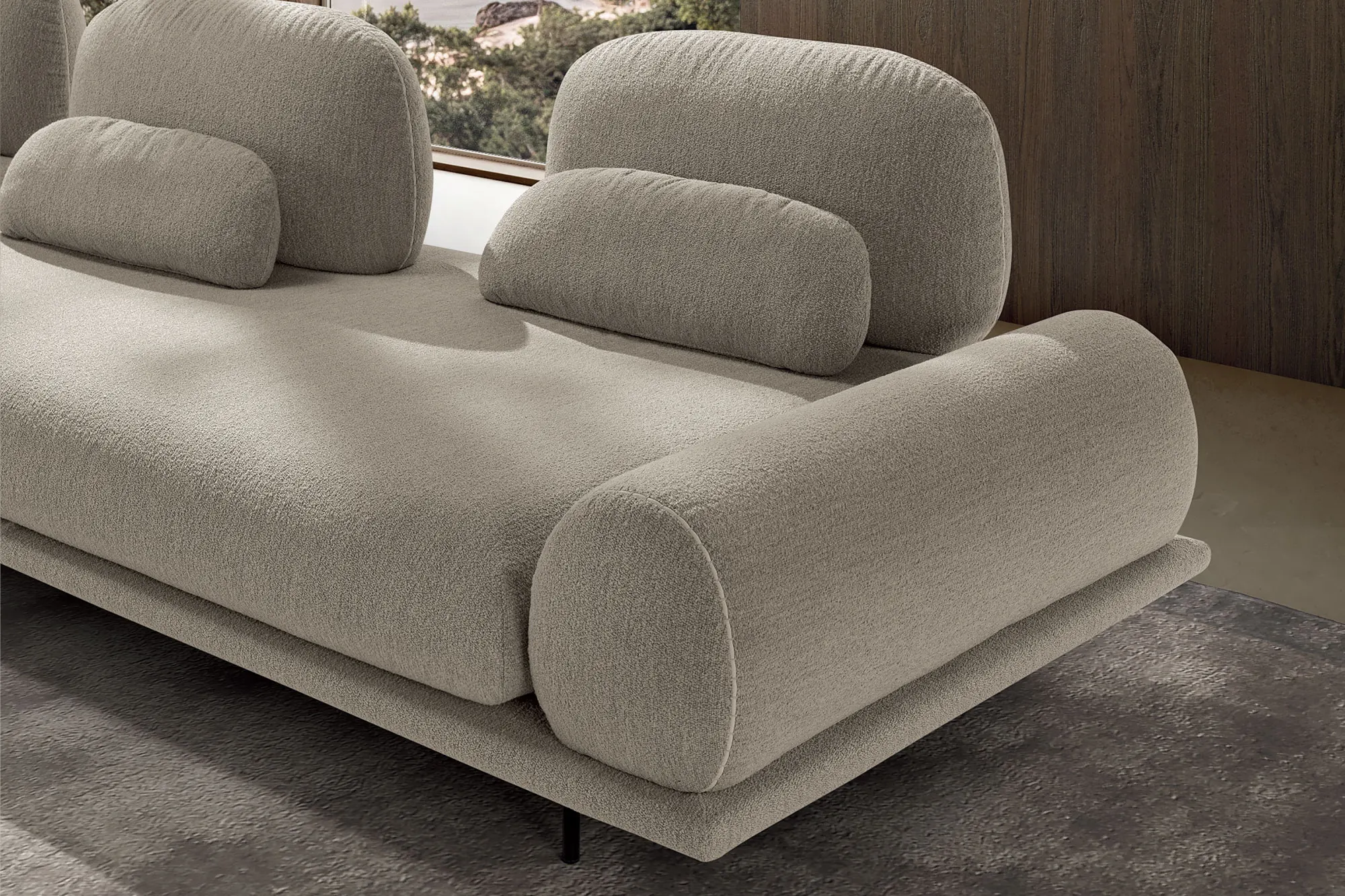 Κομψός και εντυπωσιακός, ο Sospiro είναι ένας καναπές με ανάλαφρη και αρμονική αισθητική, που διαθέτει απαλούς, γλυπτικούς όγκους χωρίς αιχμηρές άκρες. Το ιδιαίτερο χαρακτηριστικό του είναι το στρογγυλεμένο σχήμα της πλάτης και των μπράτσων, που θυμίζει πέτρες που έχουν λειανθεί από τον χρόνο και την αργή δράση των στοιχείων της φύσης.